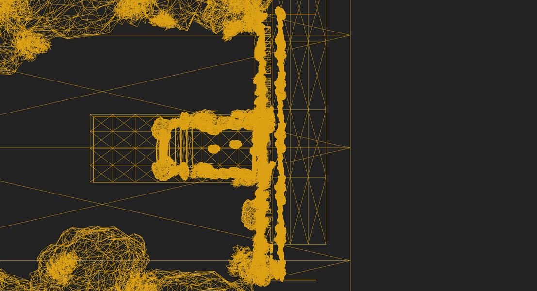 The second version of the paper map for "Haven", drawn over the "Lighting Only" version of the map. My goal for this map was the theme of simplicity. I wanted to make a rather straight-forward platformer while also presenting a challenge to the player despite its simplicity.